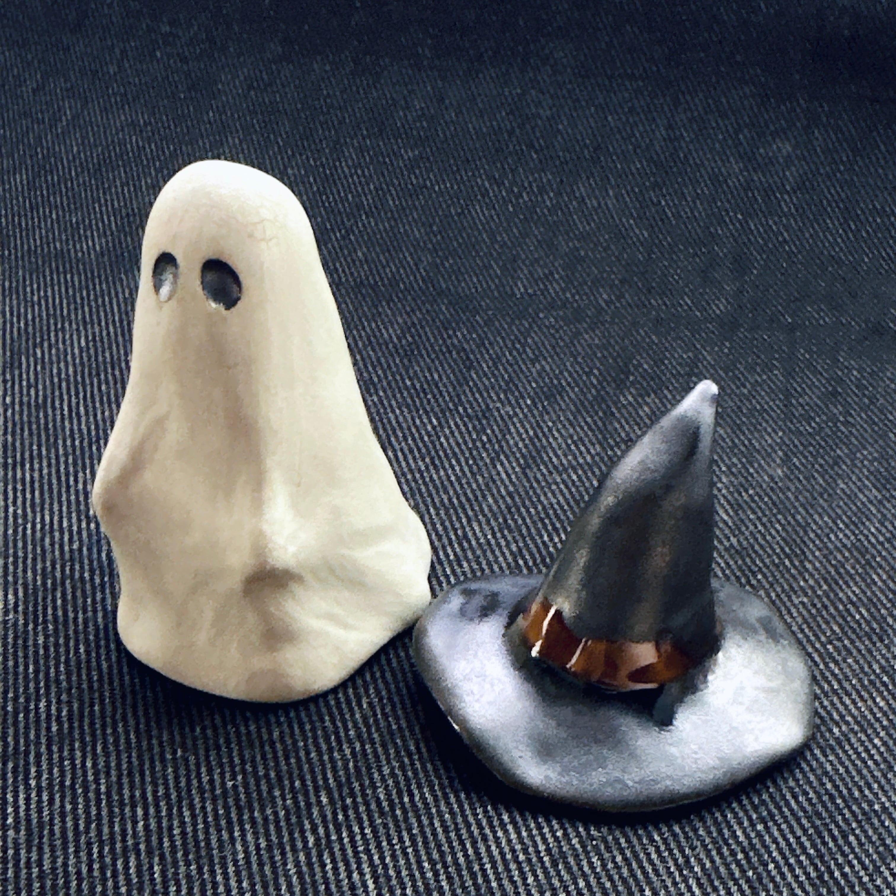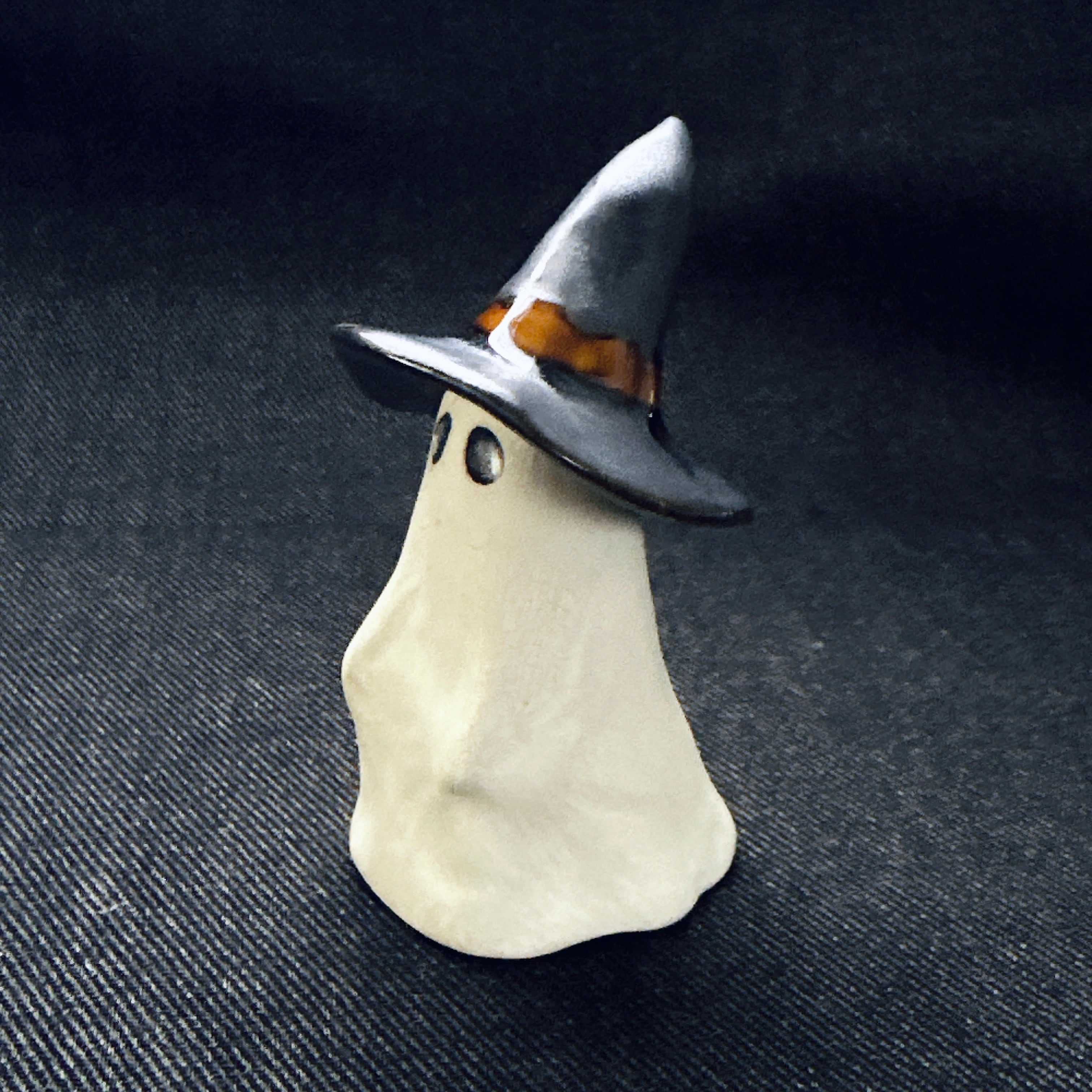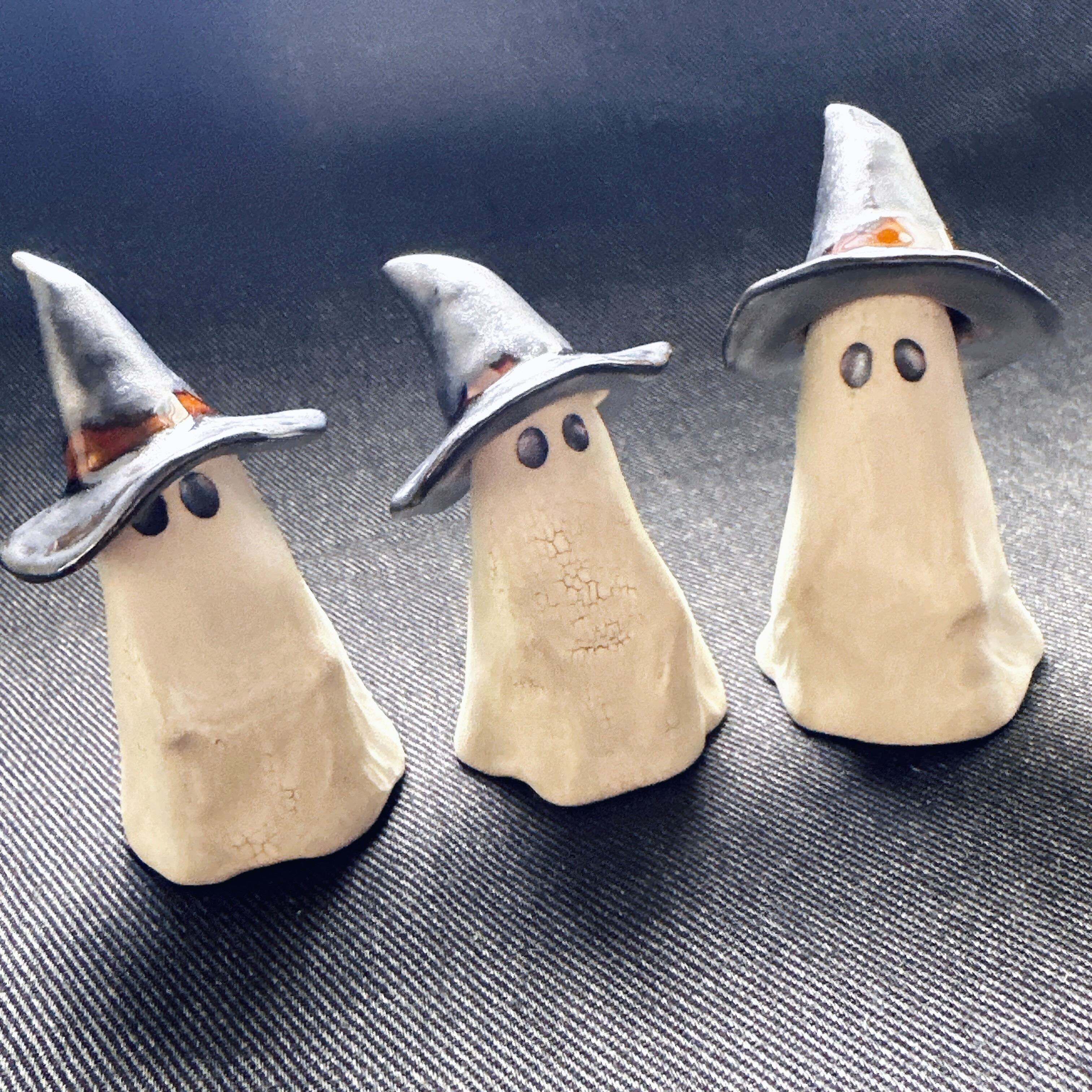 ハロウィンにぴったりのおばけモチーフの置物。帽子の着脱ができます。