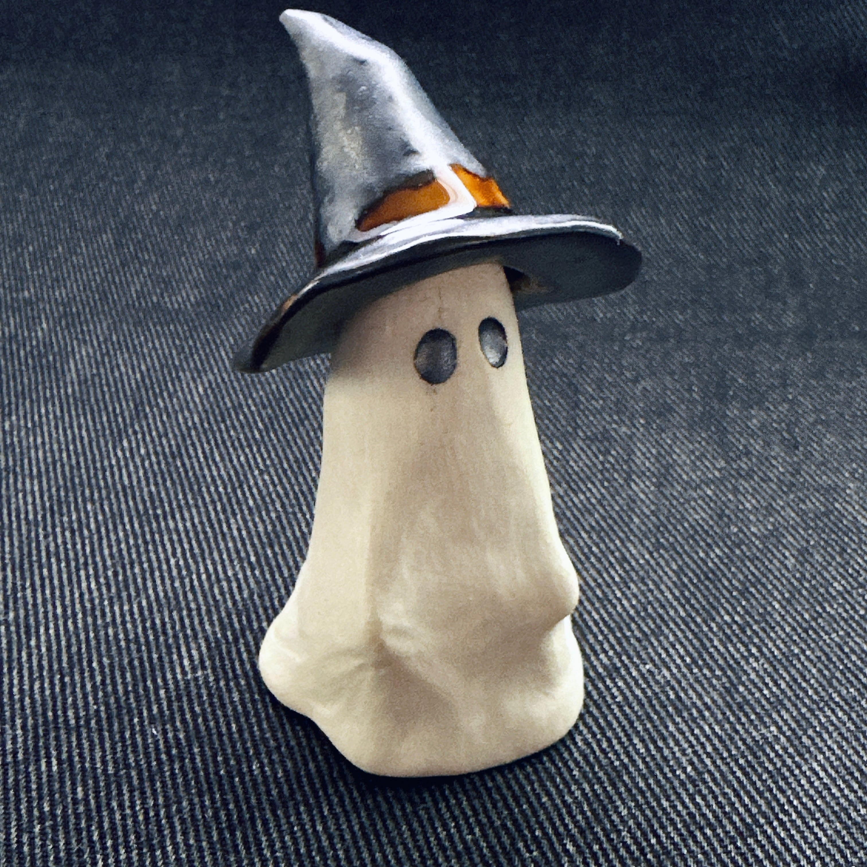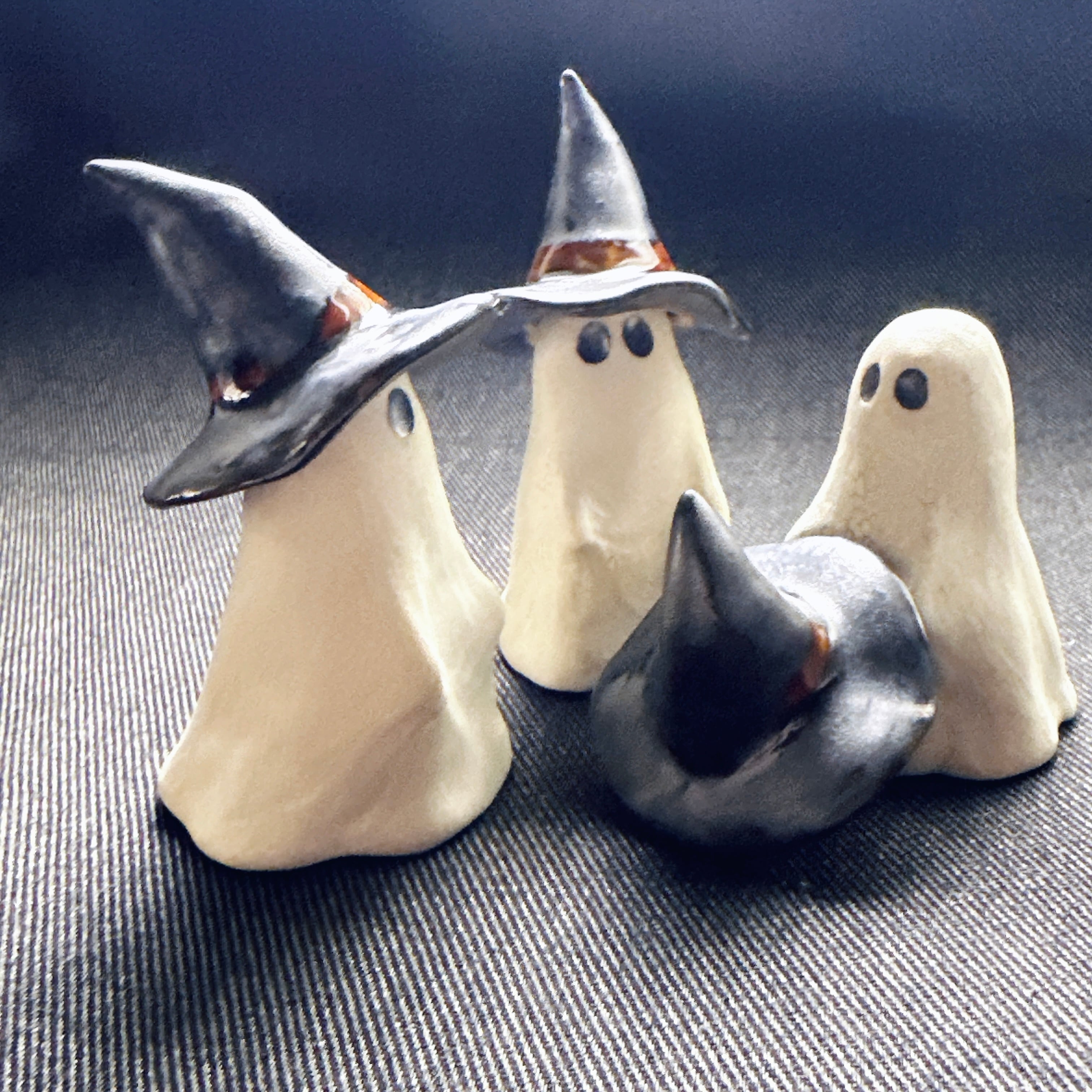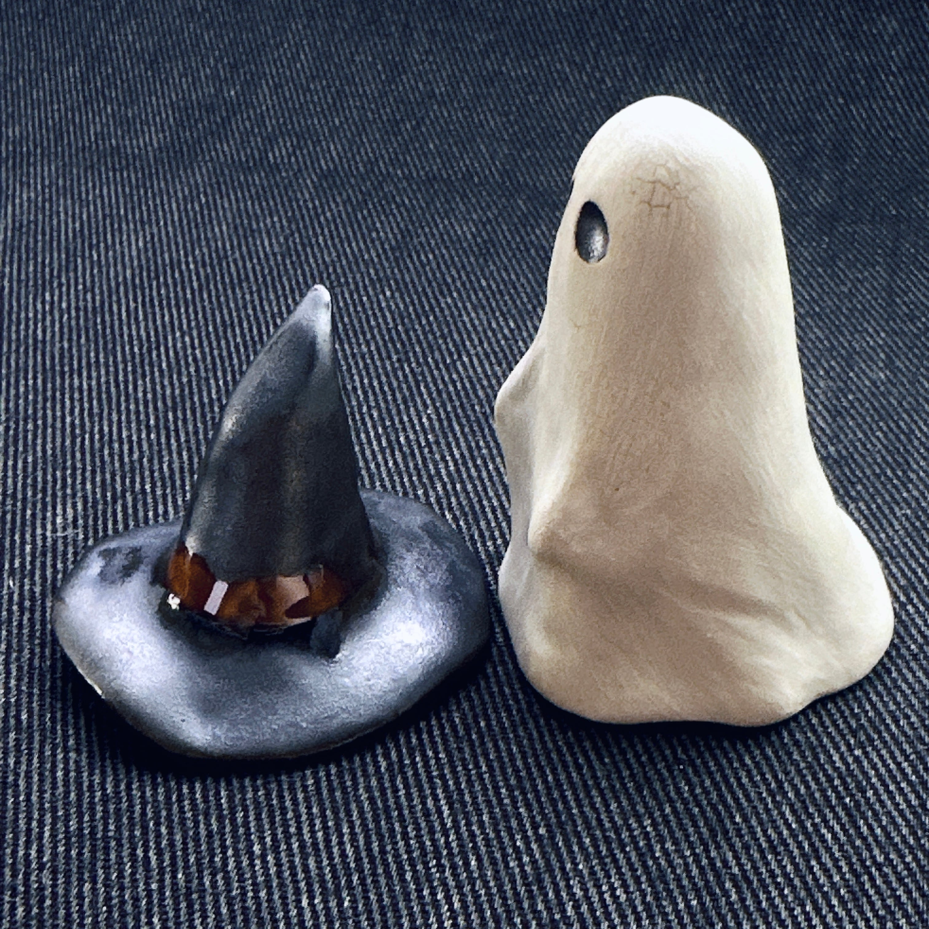 ハロウィンにぴったりのおばけモチーフの置物。帽子の着脱ができます。