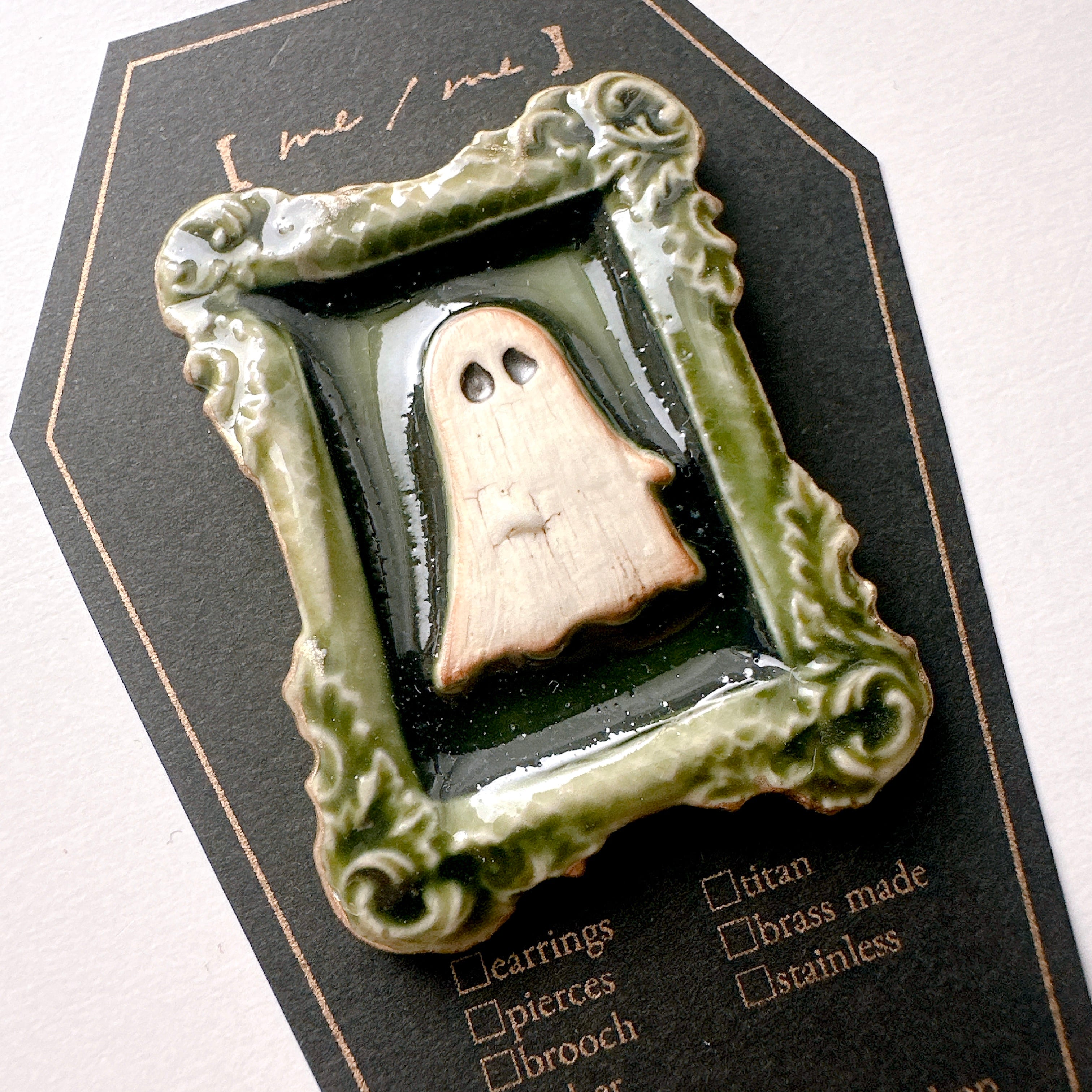 可愛らしいおばけモチーフの陶アクセサリー。