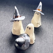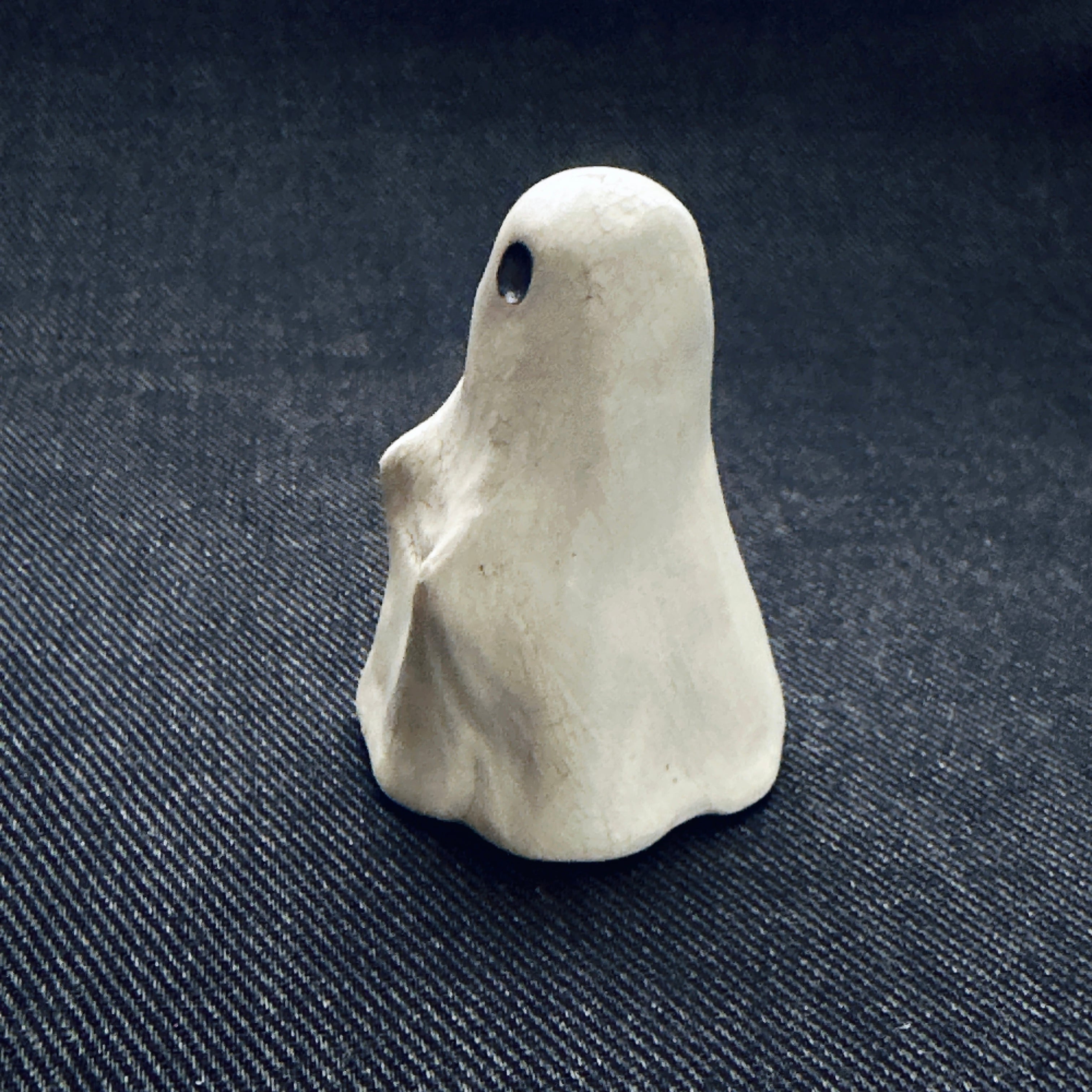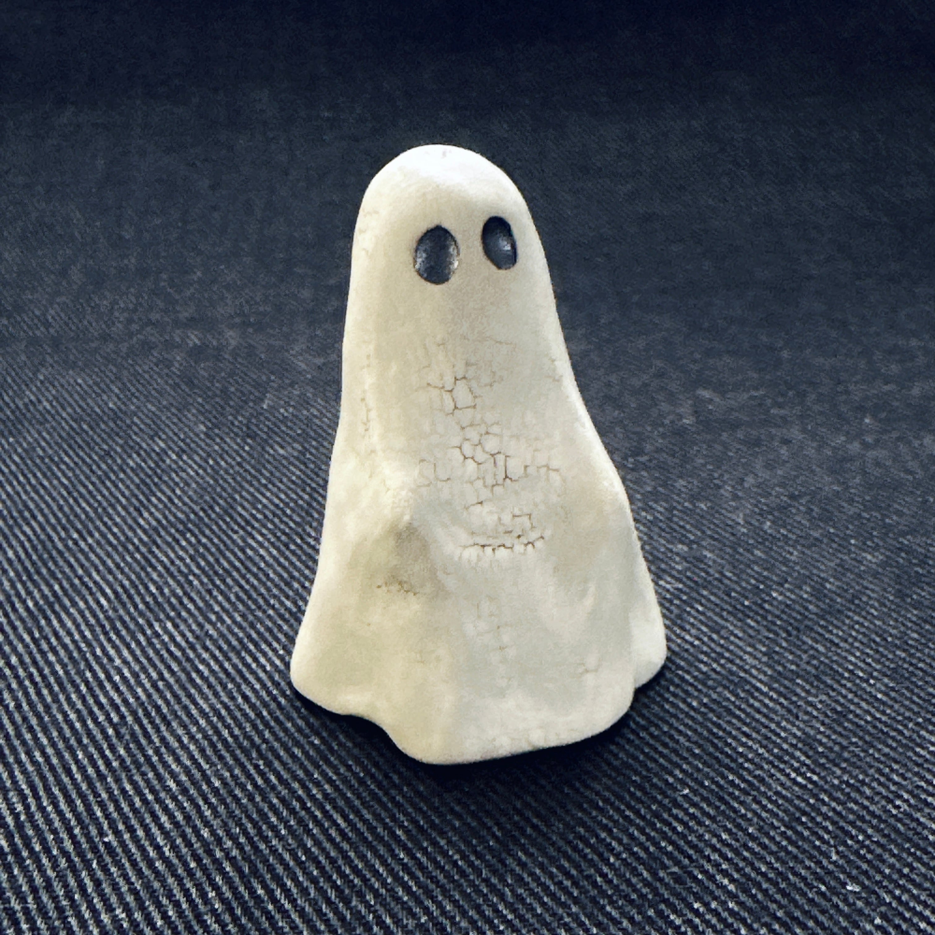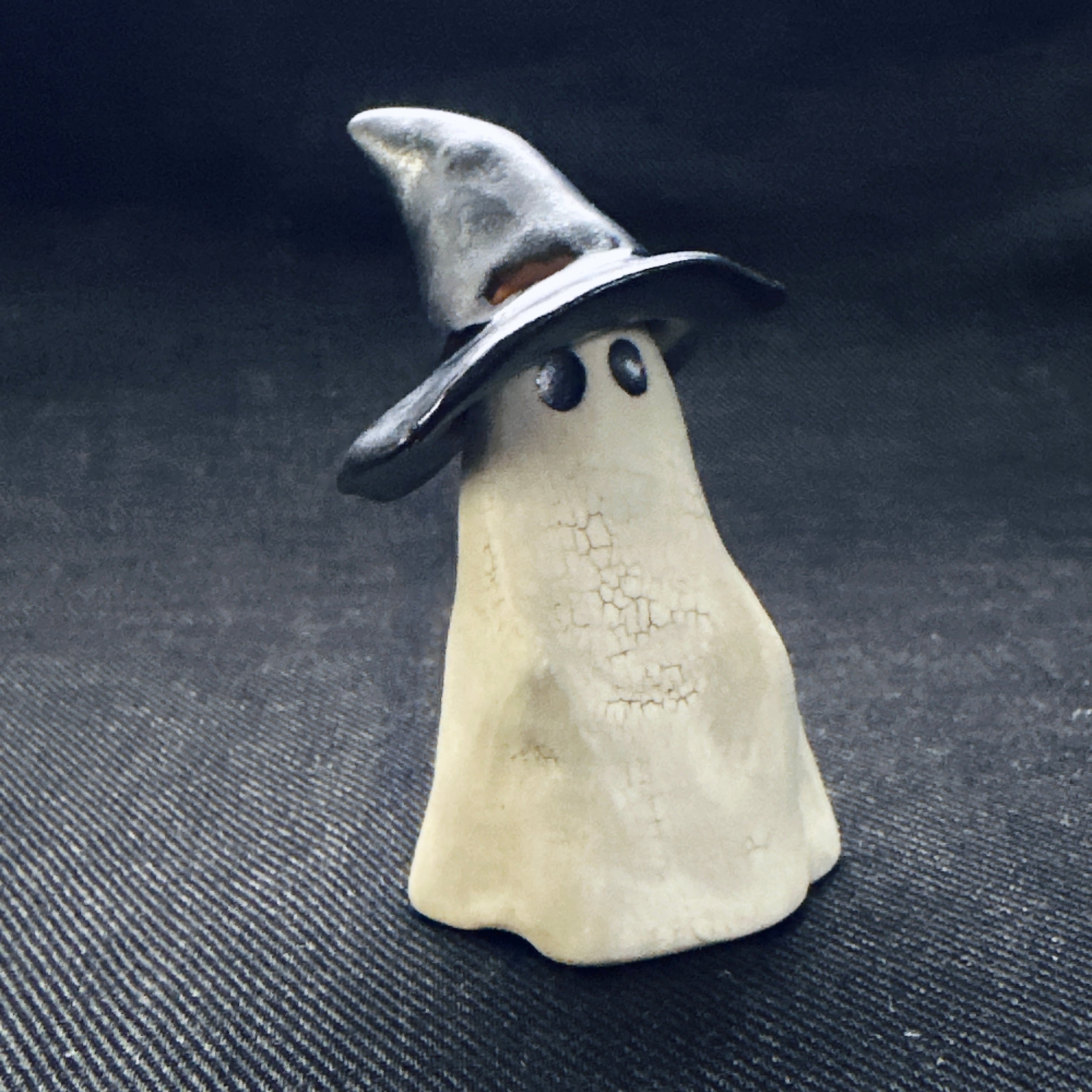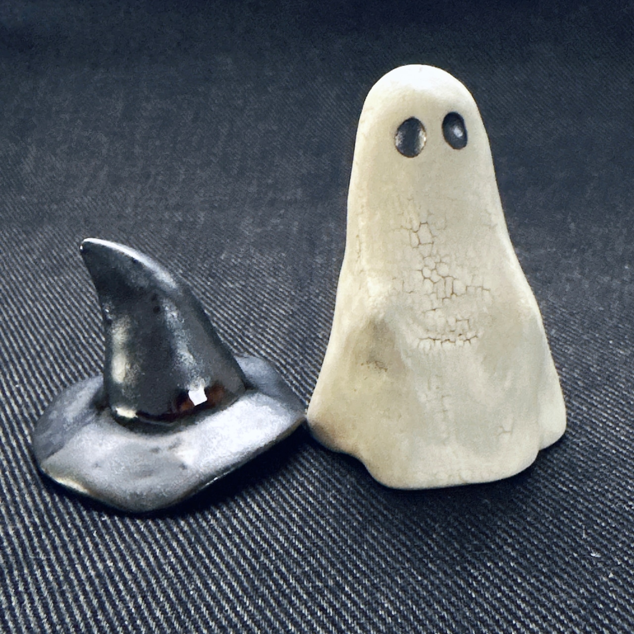 ハロウィンにぴったりのおばけモチーフの置物。帽子の着脱ができます。