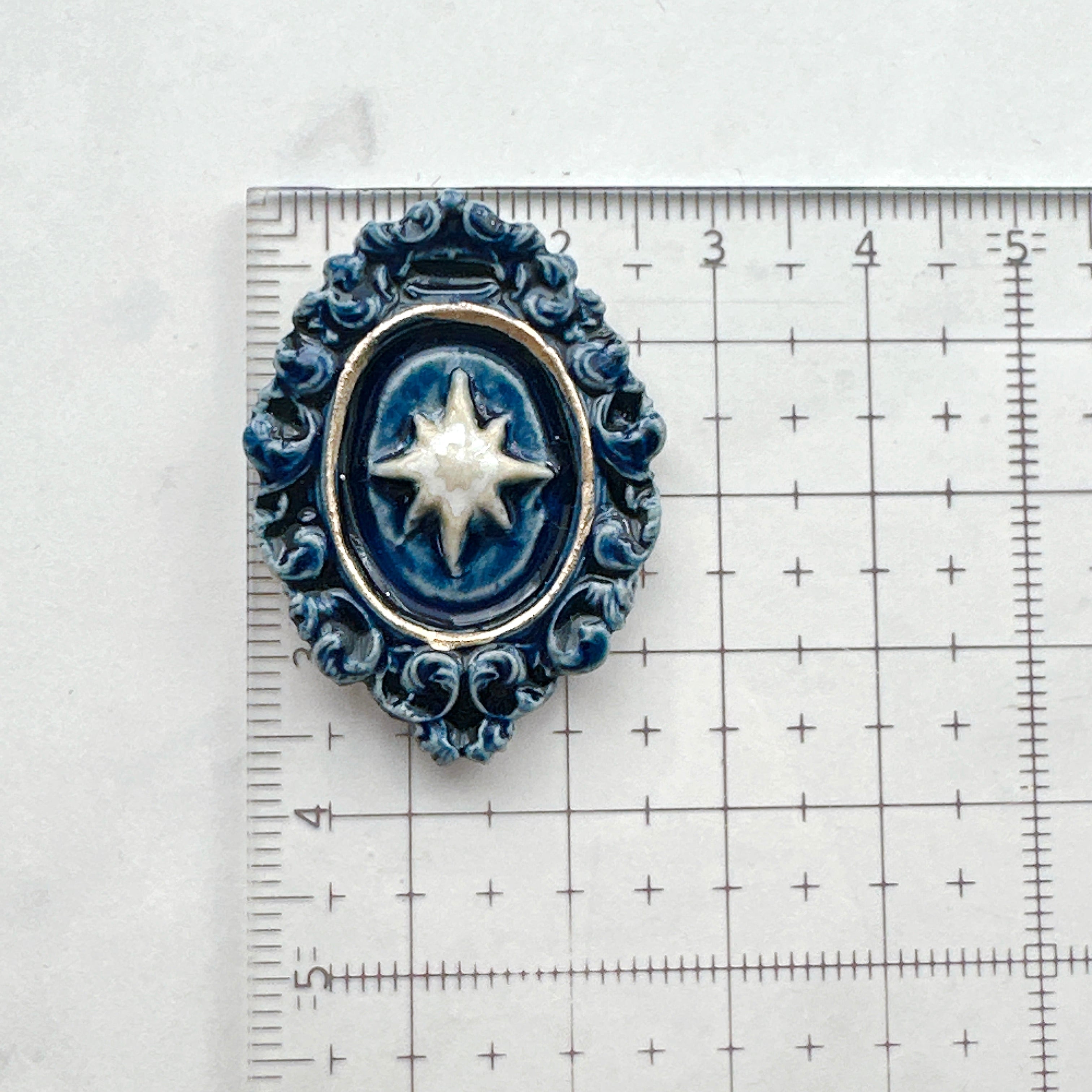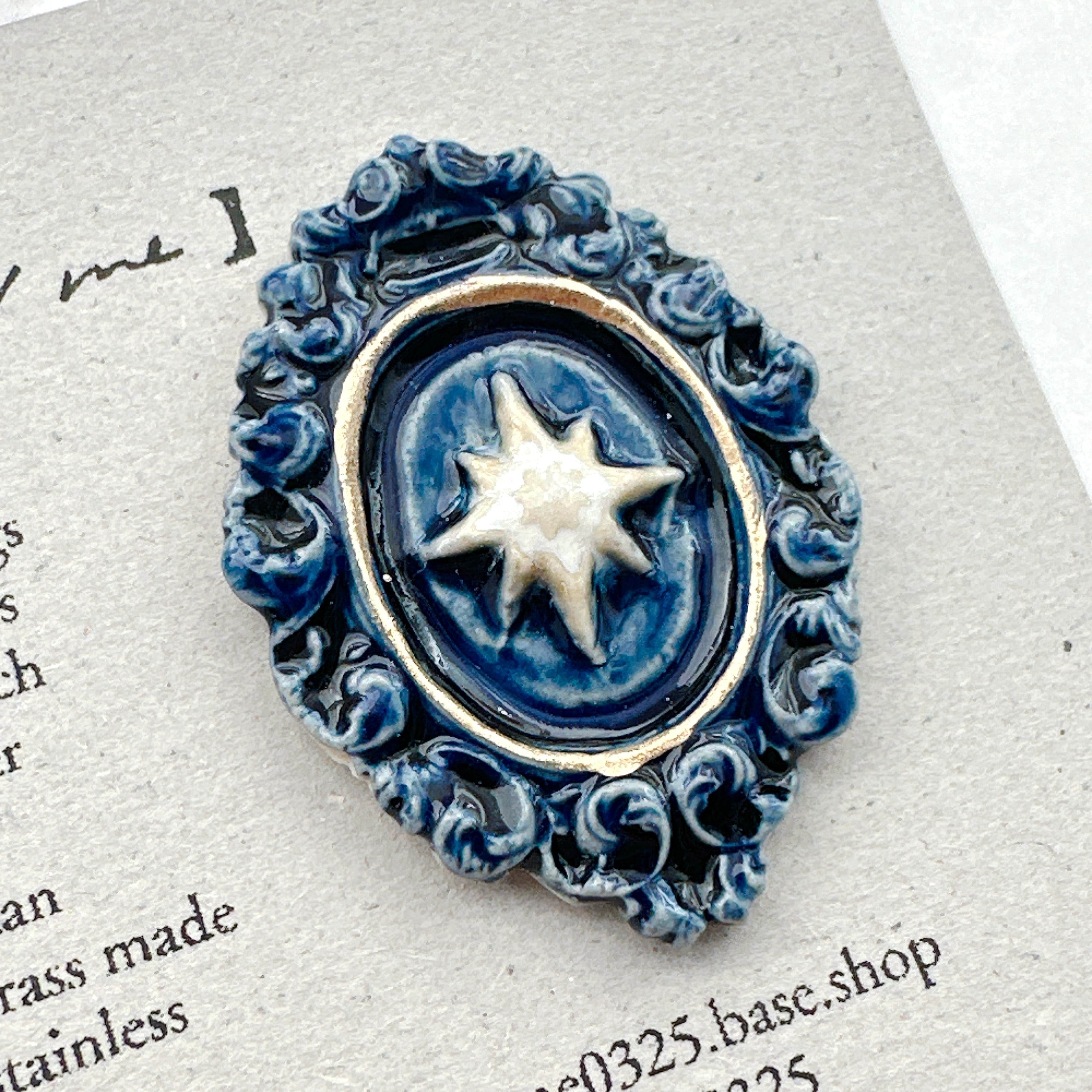 青が美しい天体モチーフの陶物。アンティークな雰囲気で存在感があります。そのまま飾っても可愛いです。