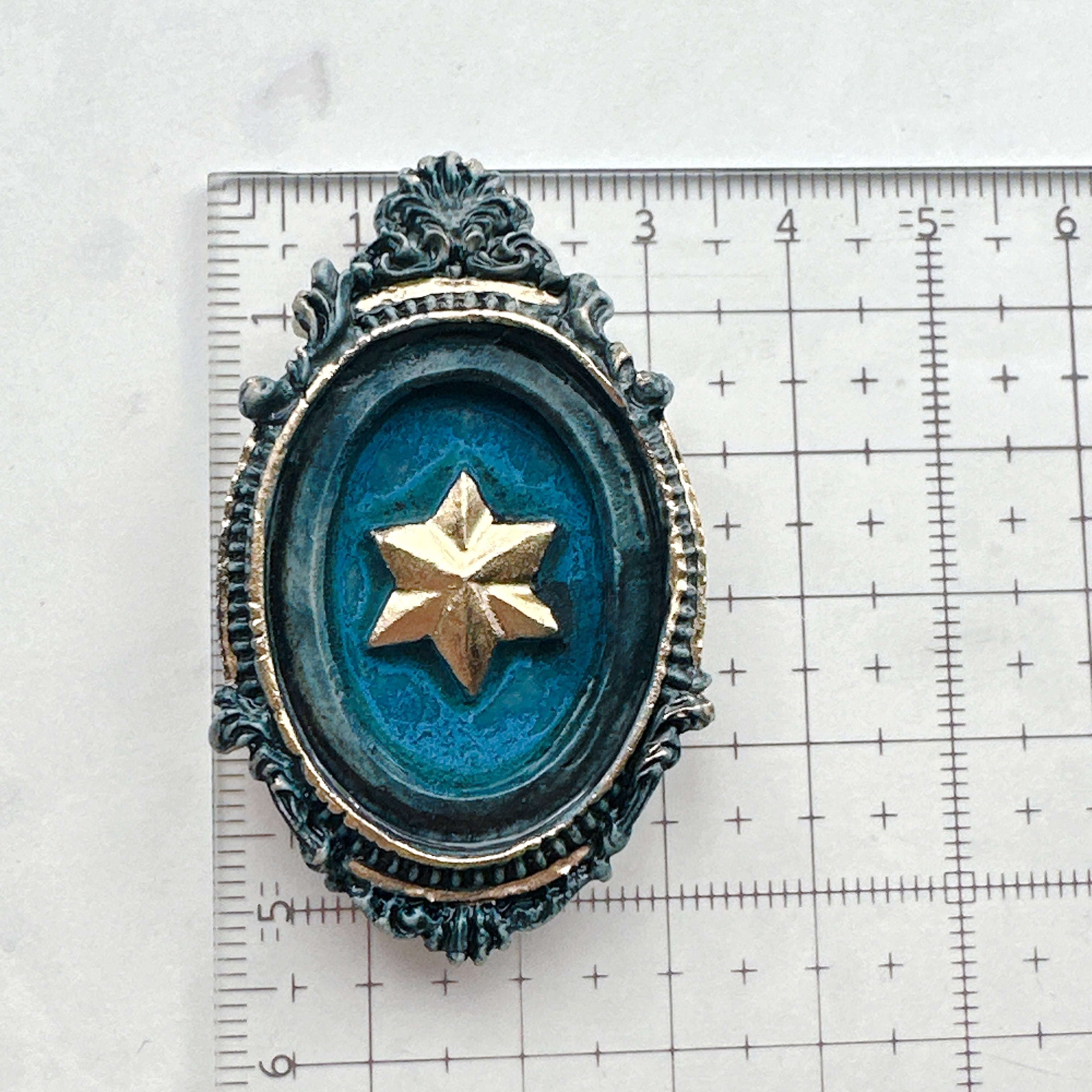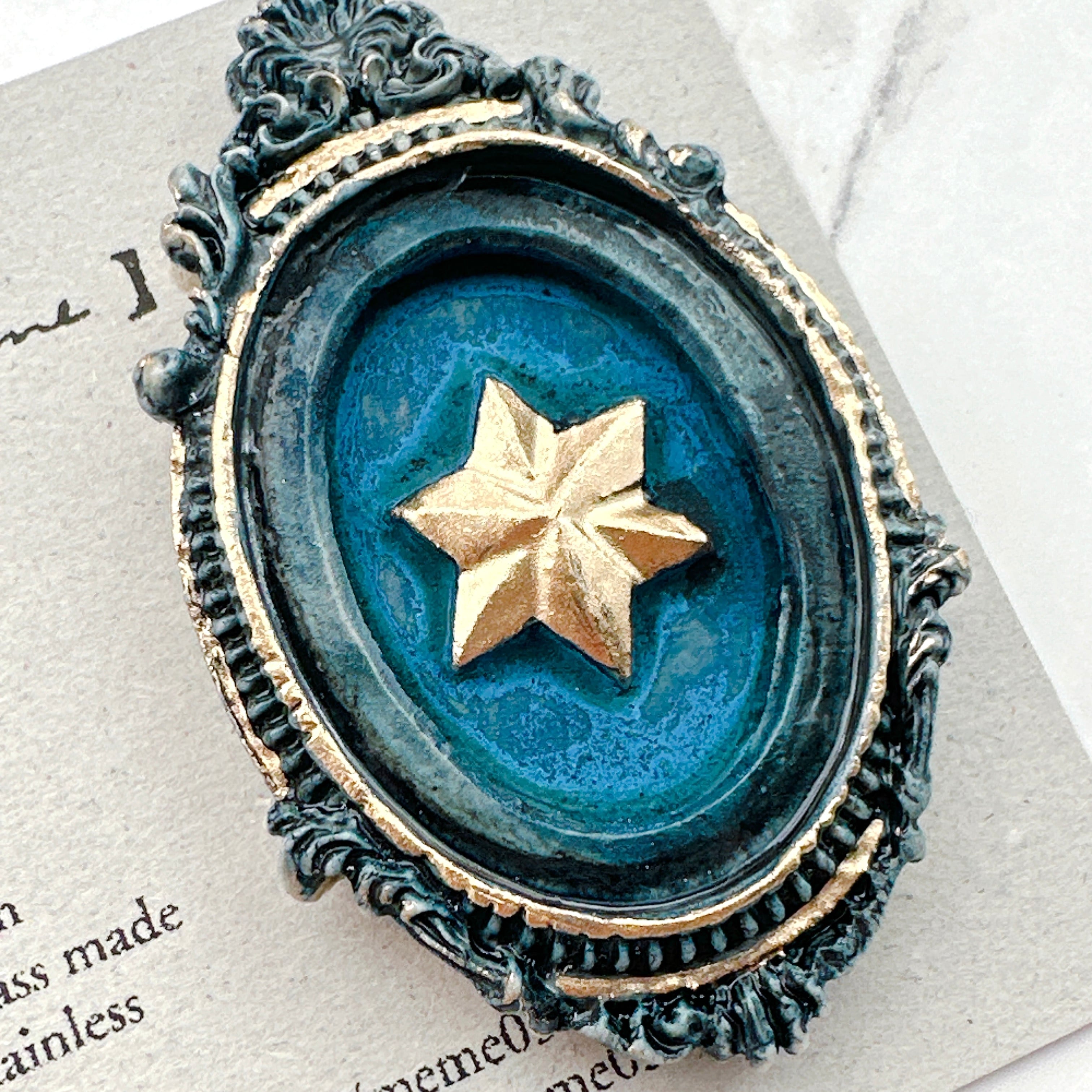 青が美しい天体モチーフの陶物。アンティークな雰囲気で存在感があります。そのまま飾っても可愛いです。