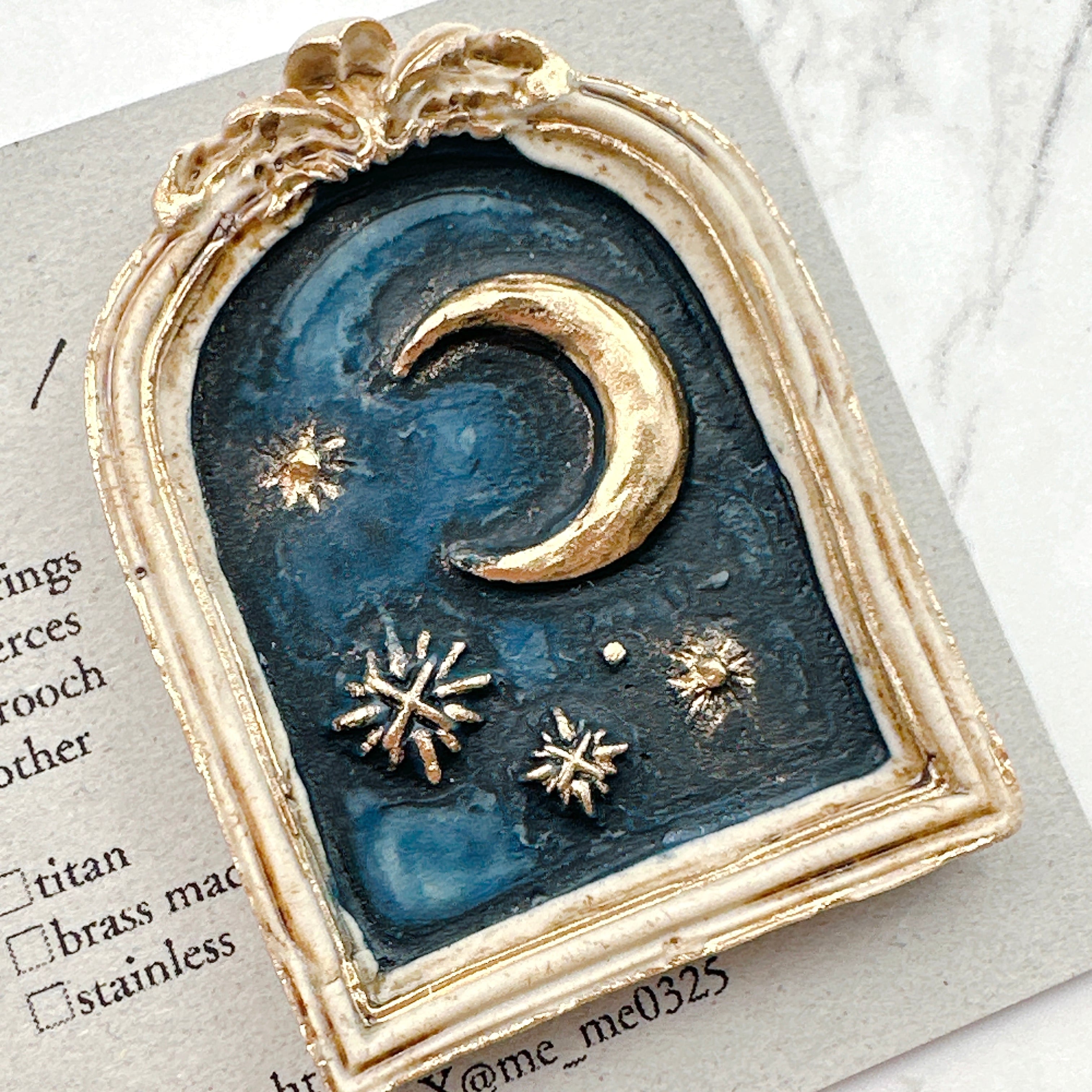 青が美しい天体モチーフの陶物。アンティークな雰囲気で存在感があります。そのまま飾っても可愛いです。