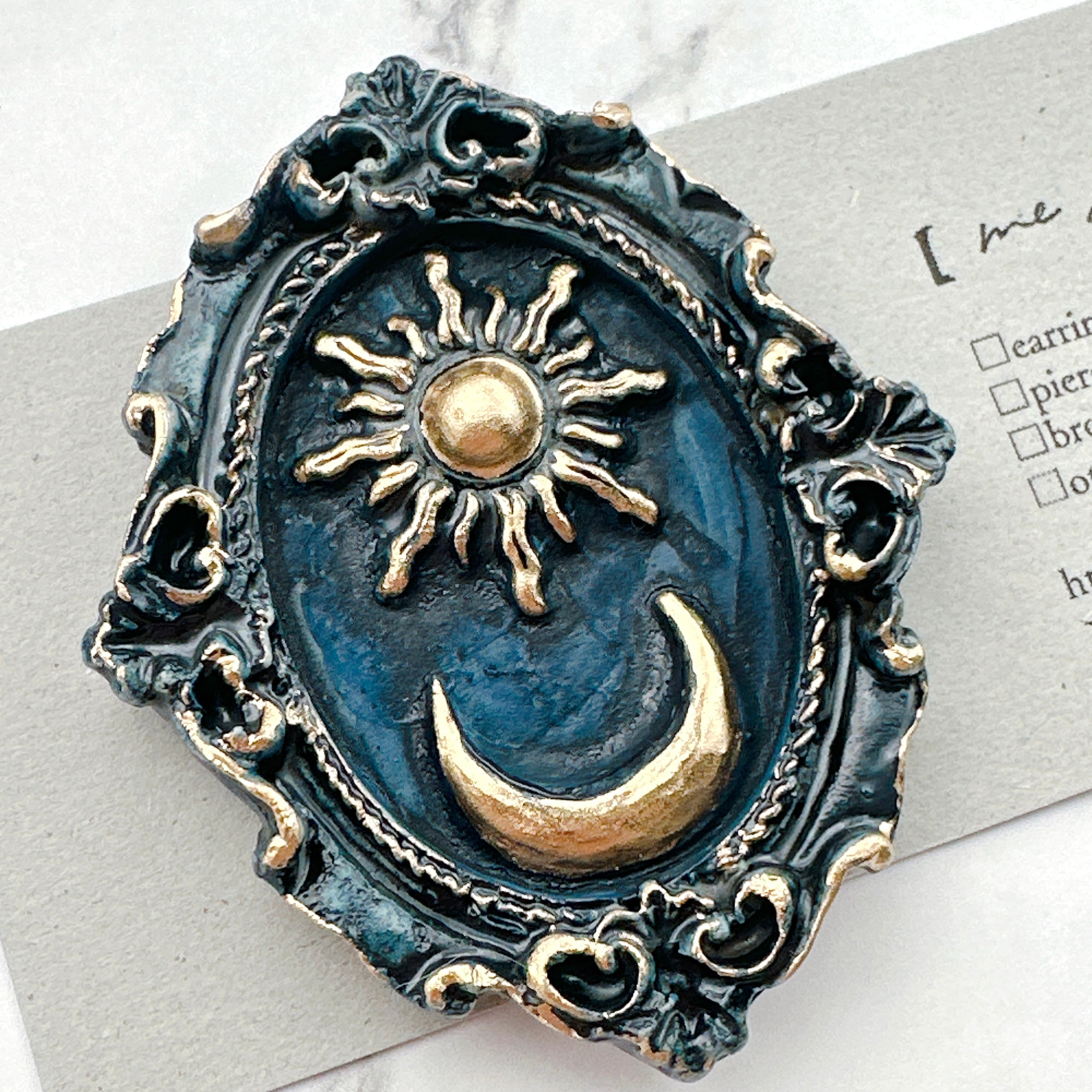 青が美しい天体モチーフの陶物。アンティークな雰囲気で存在感があります。そのまま飾っても可愛いです。