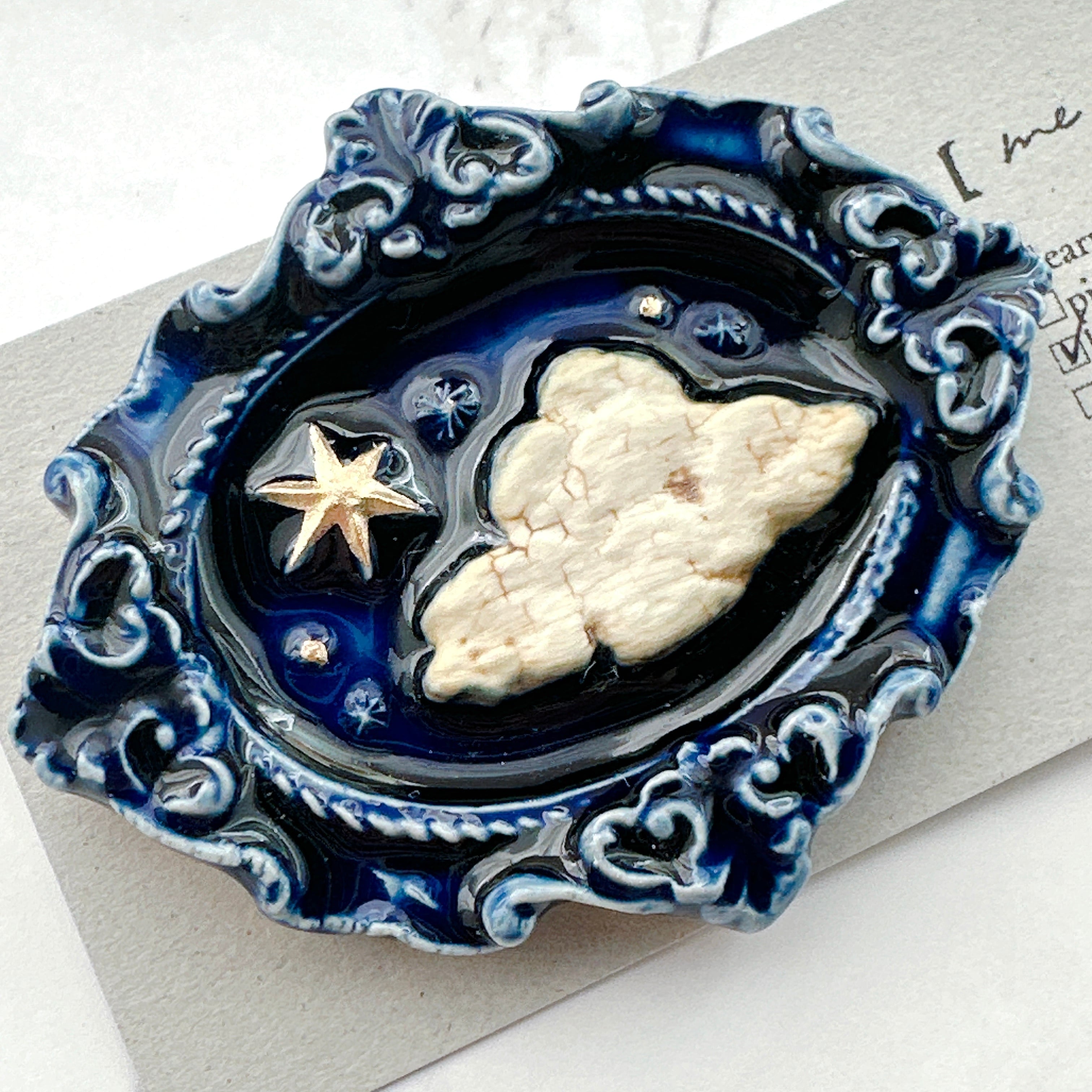 デコラティブで存在感があります。アンティークで高級感のある印象で、厚手のストールなどによく合います。そのまま飾っても可愛いです。