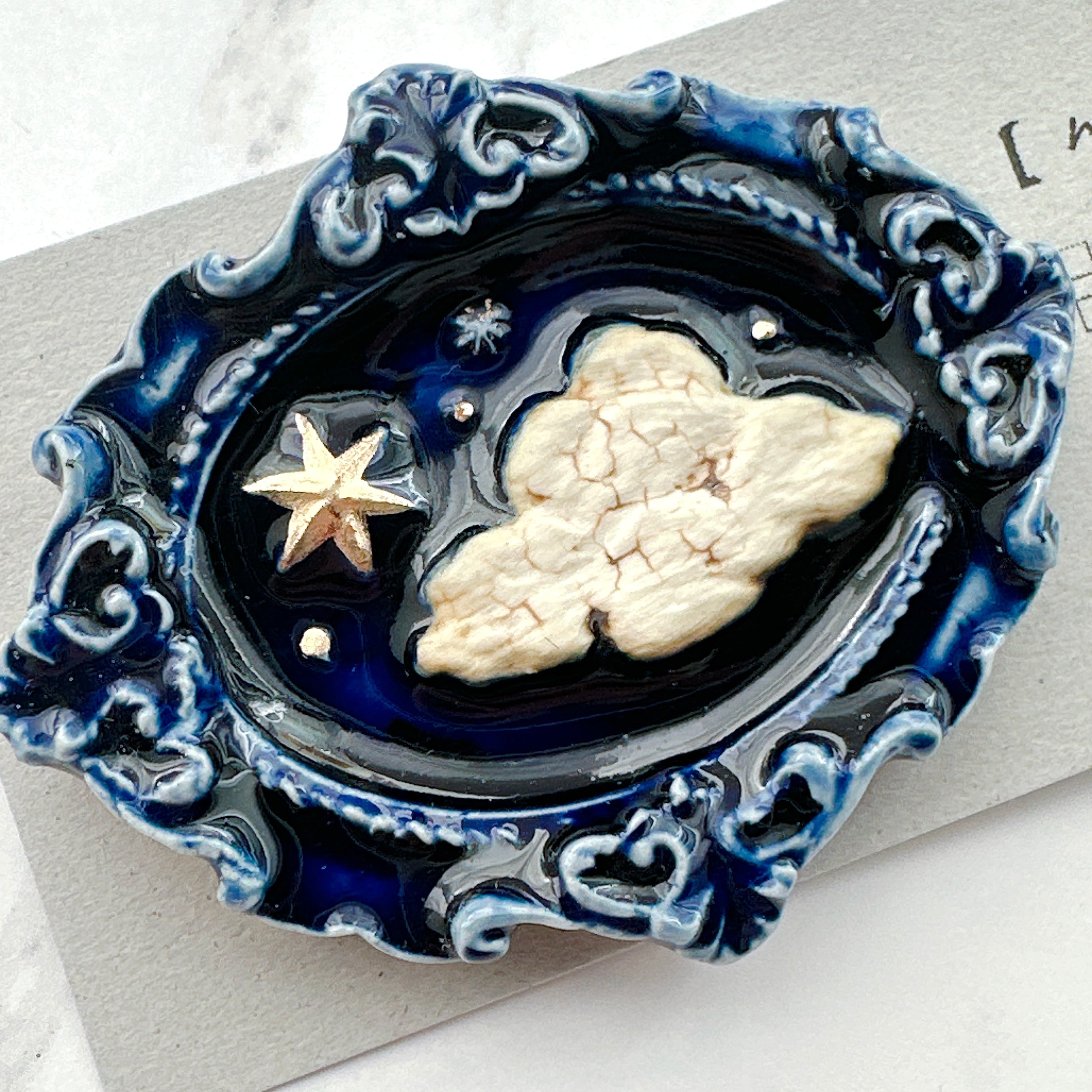デコラティブで存在感があります。アンティークで高級感のある印象で、厚手のストールなどによく合います。そのまま飾っても可愛いです。