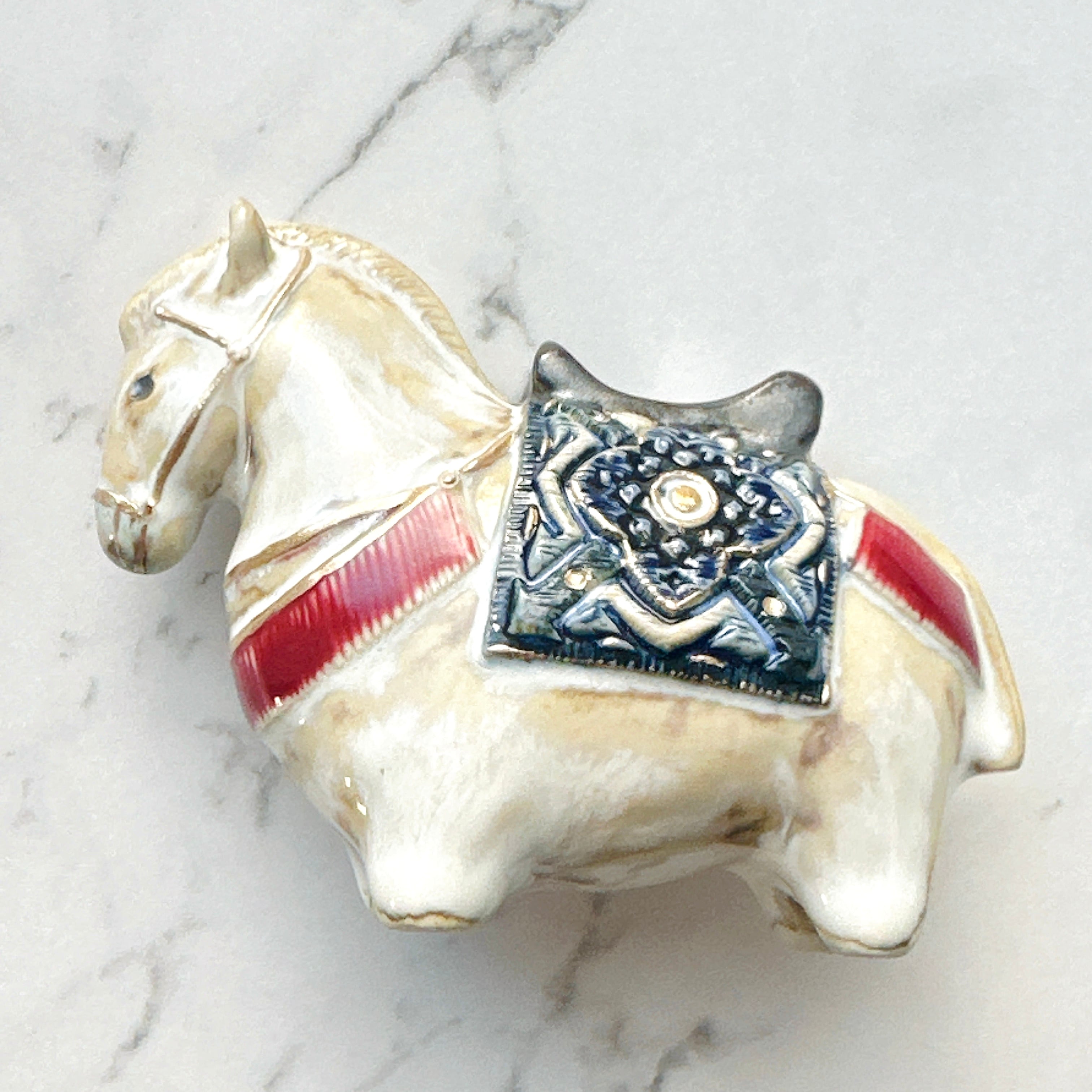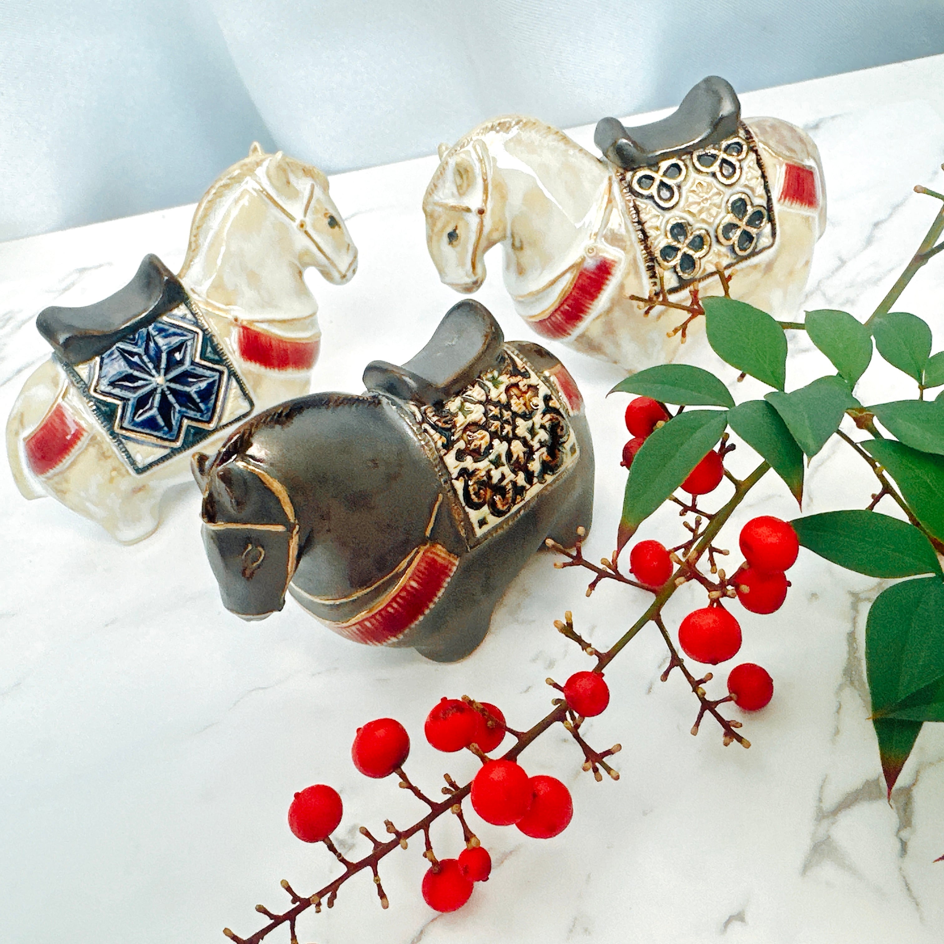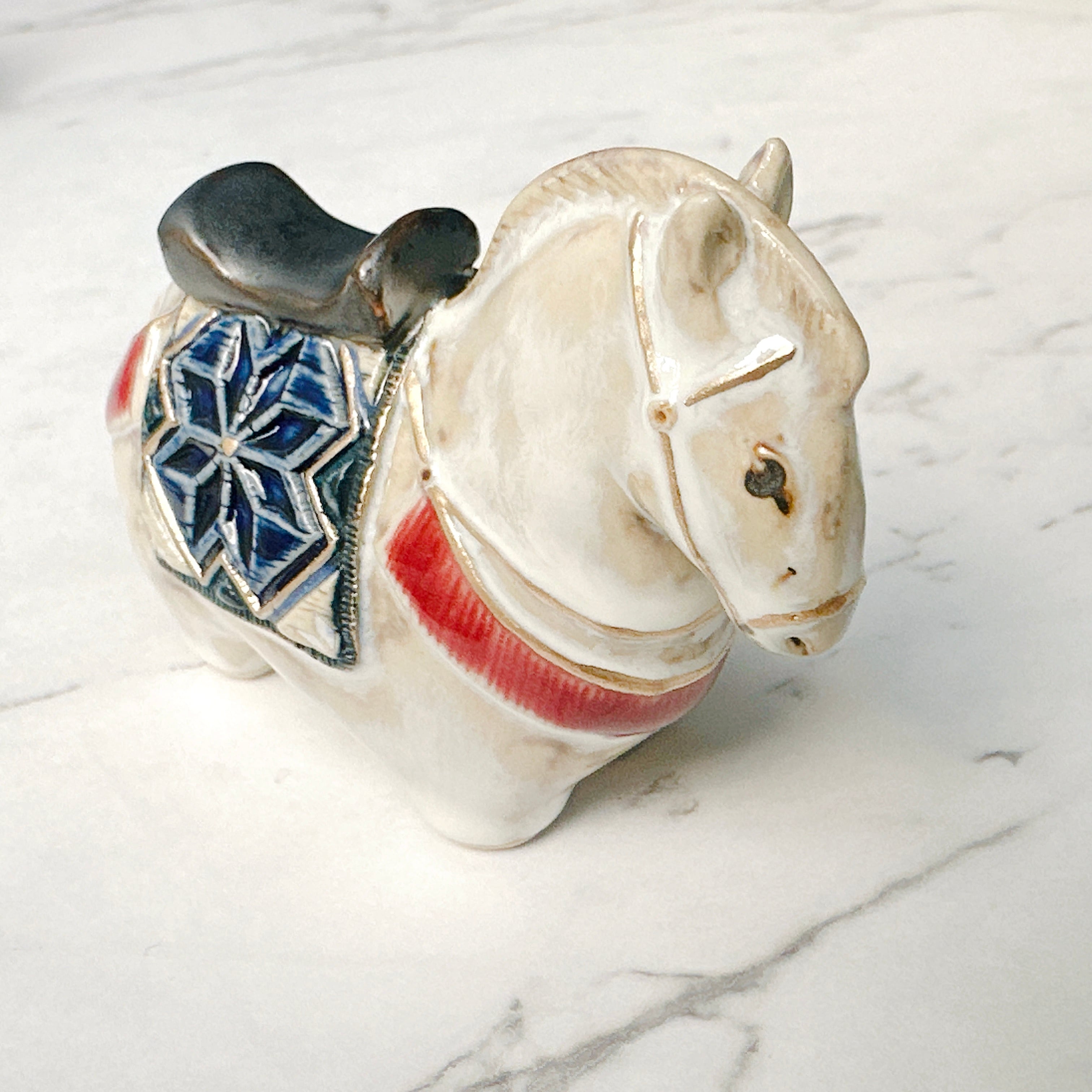 新年を寿ぐ午年の干支飾り。縁起の良い白馬の置き物です。