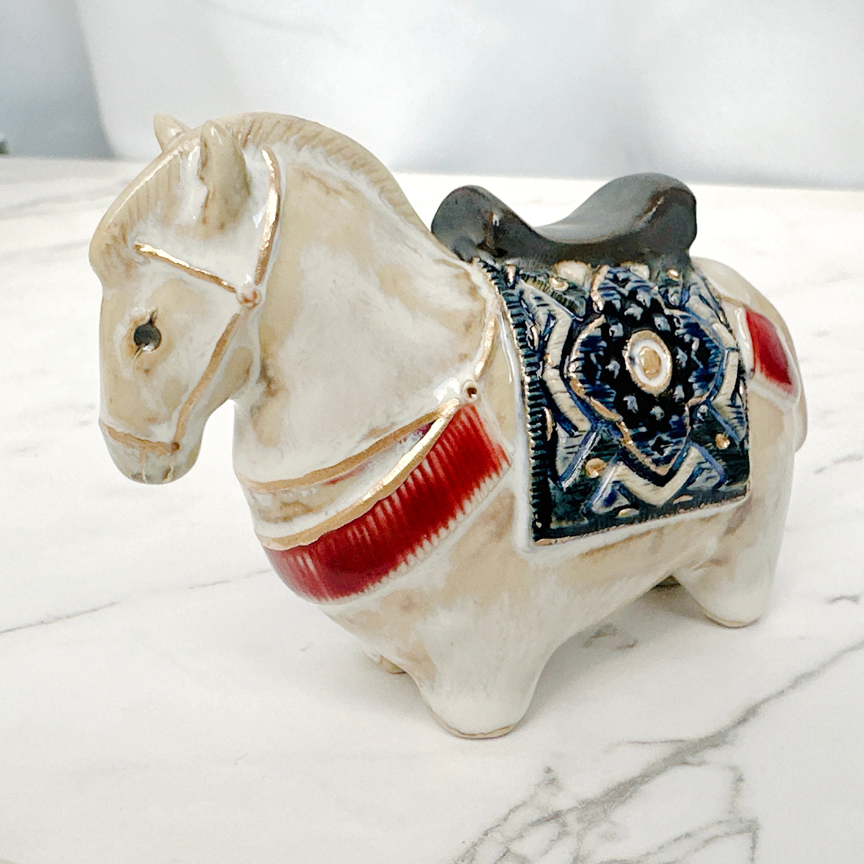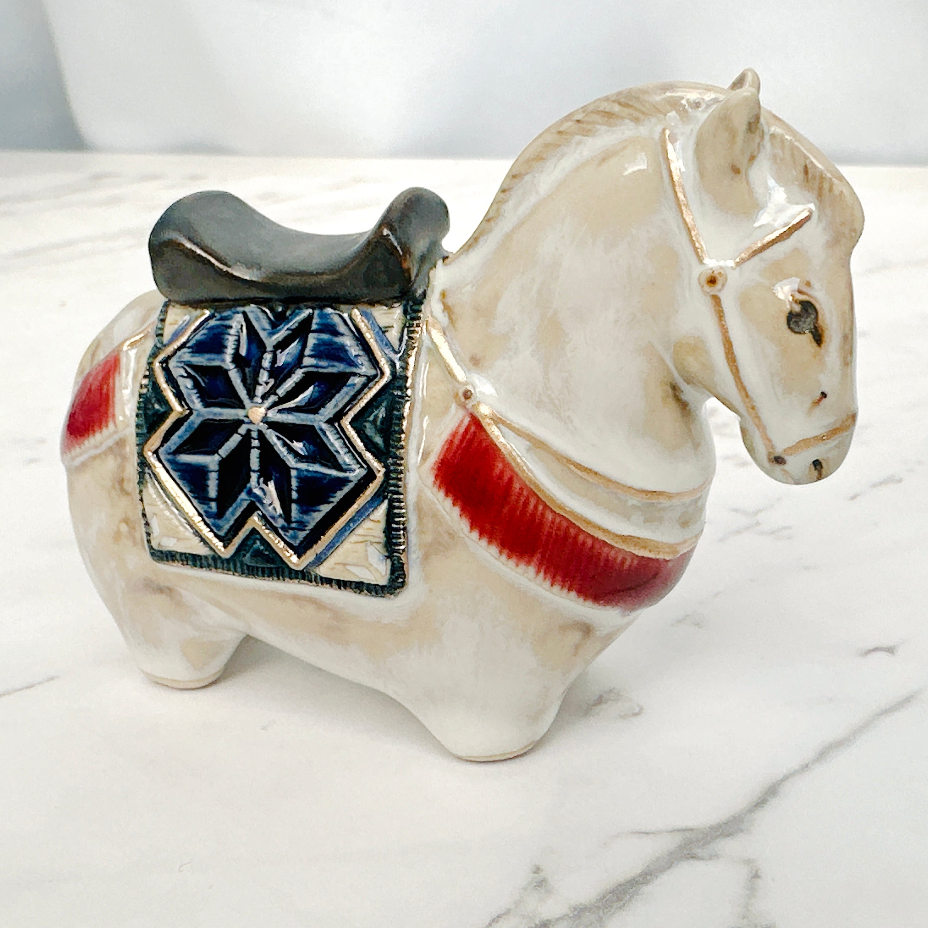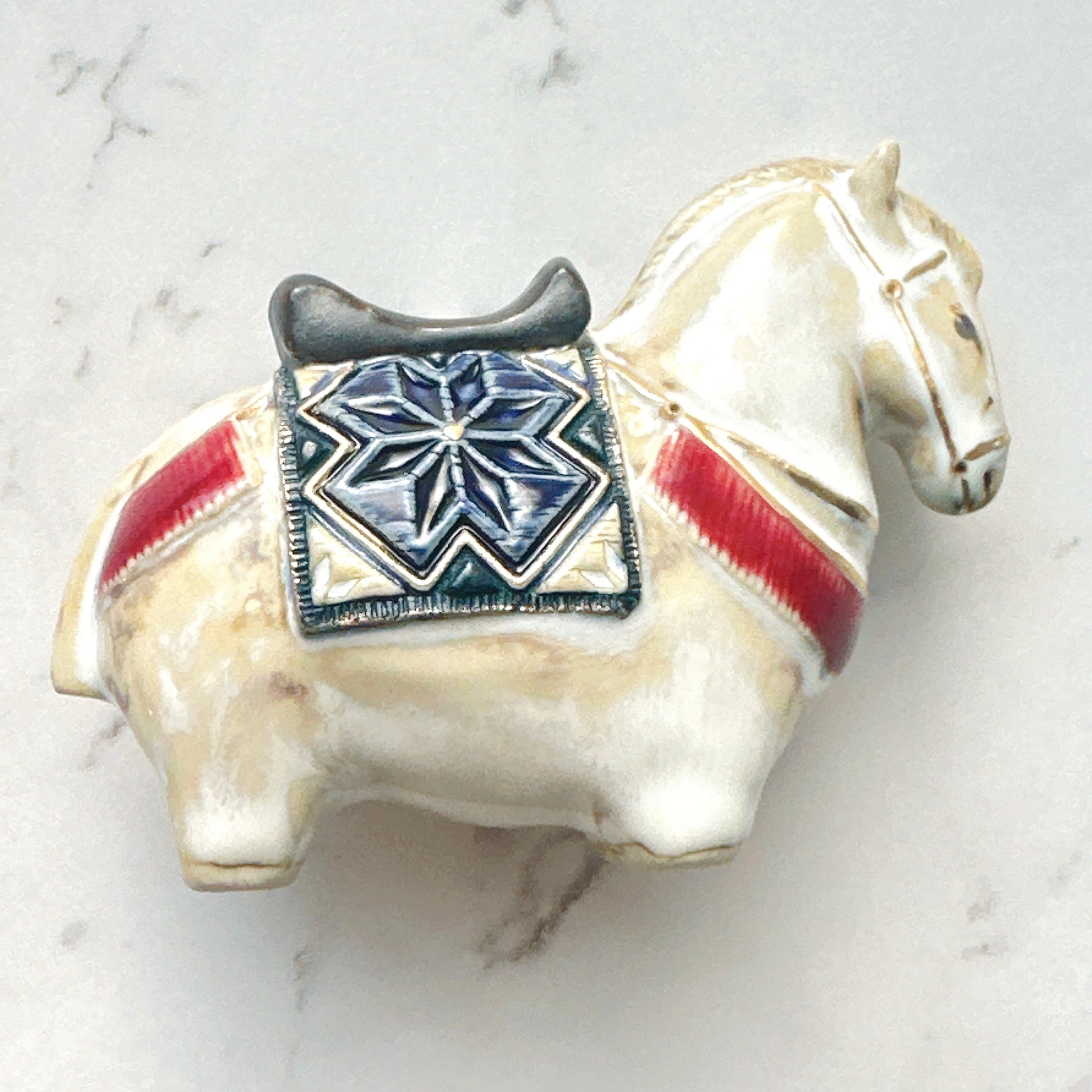 新年を寿ぐ午年の干支飾り。縁起の良い白馬の置き物です。
