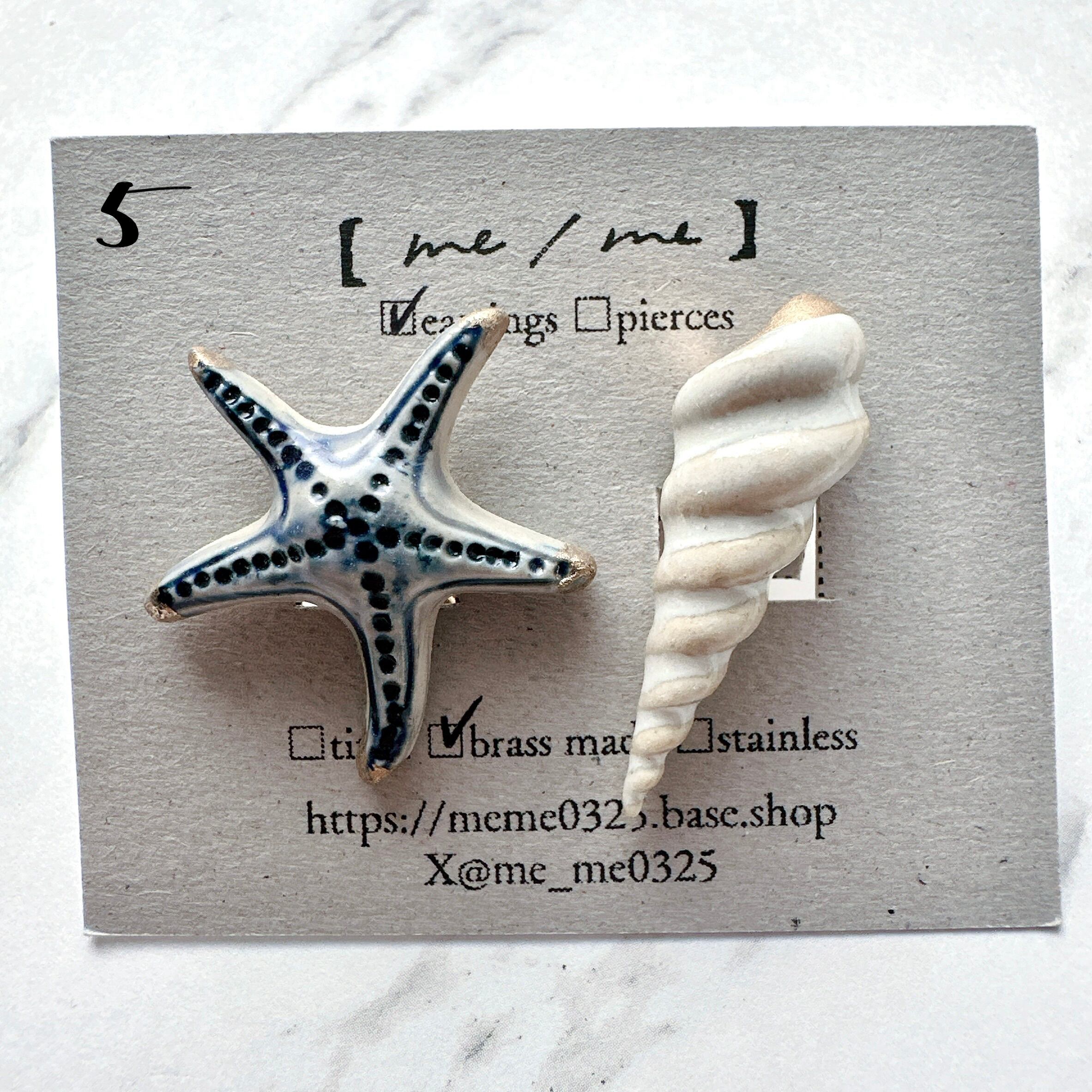 陶製の貝殻イヤリングセット。