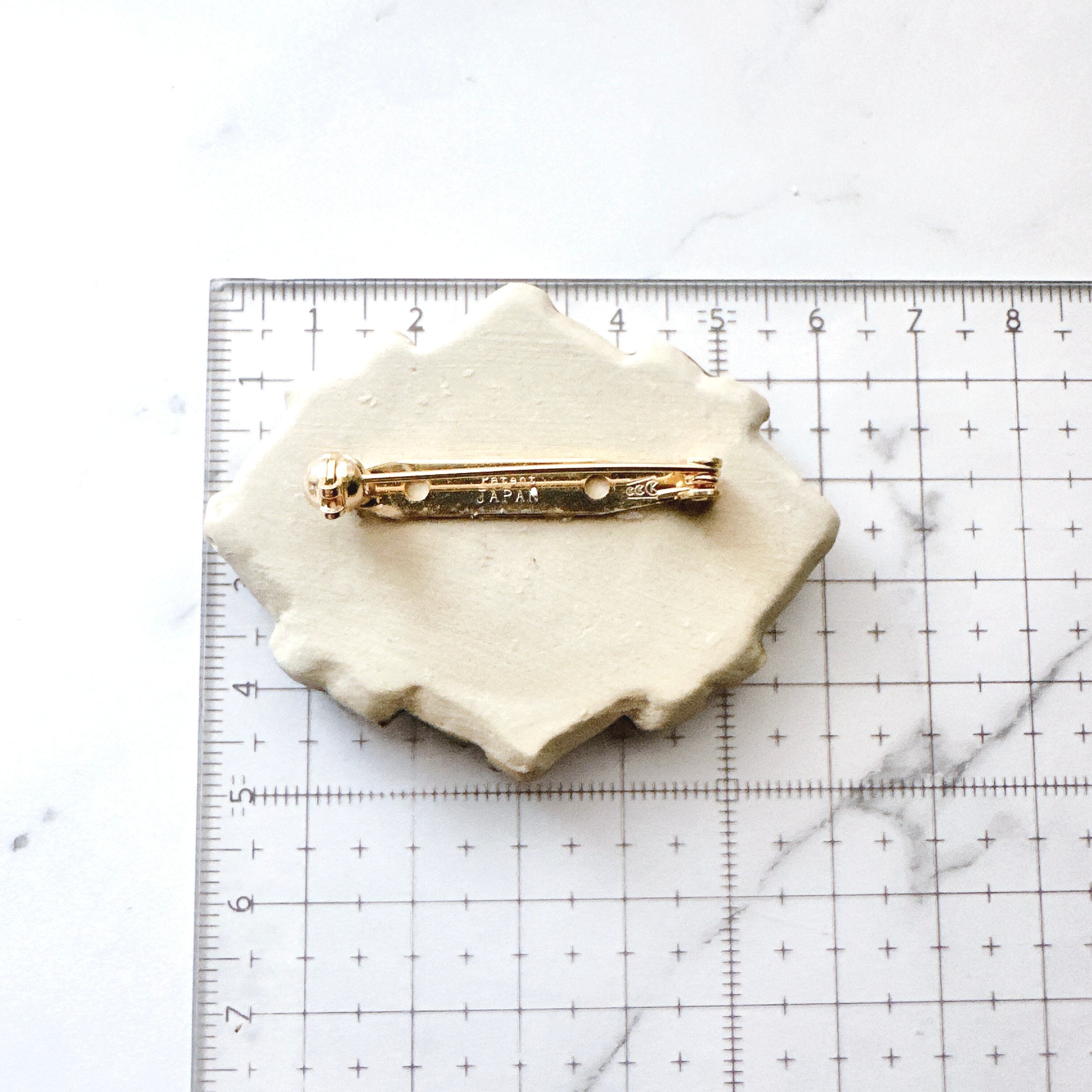 美術館や博物館をモチーフにした陶製ブローチ。