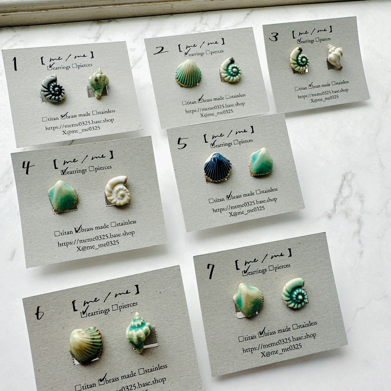 陶製の貝殻イヤリングセット。