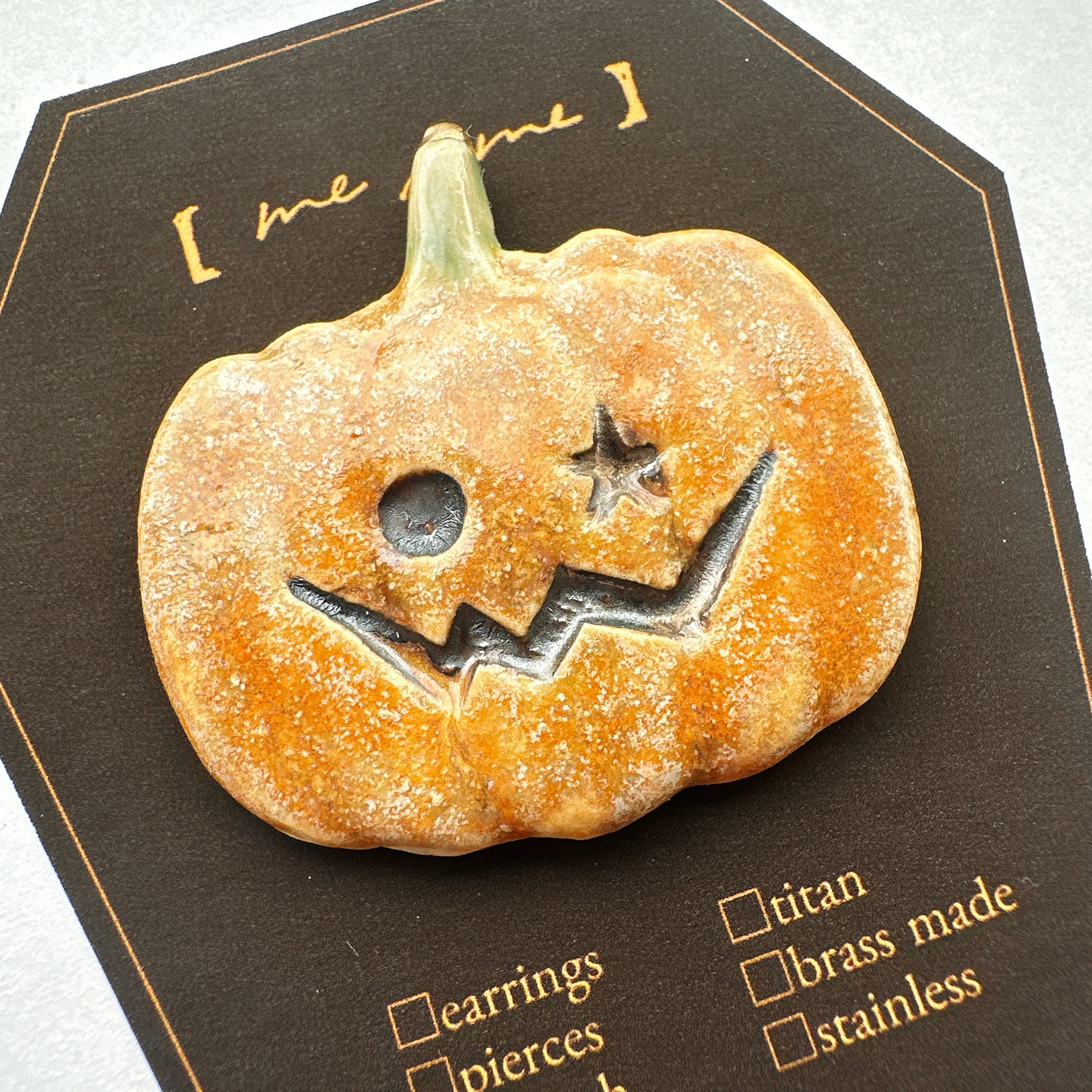 ハロウィン時期にぴったりのジャックオランタンの帯留め。ひとつひとつ個性があります。10月限定パッケージです。
