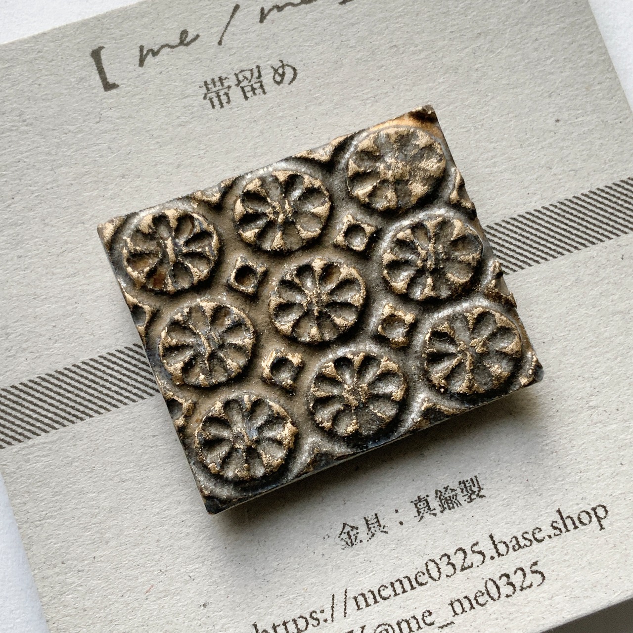 陶製の装飾モチーフの帯留。